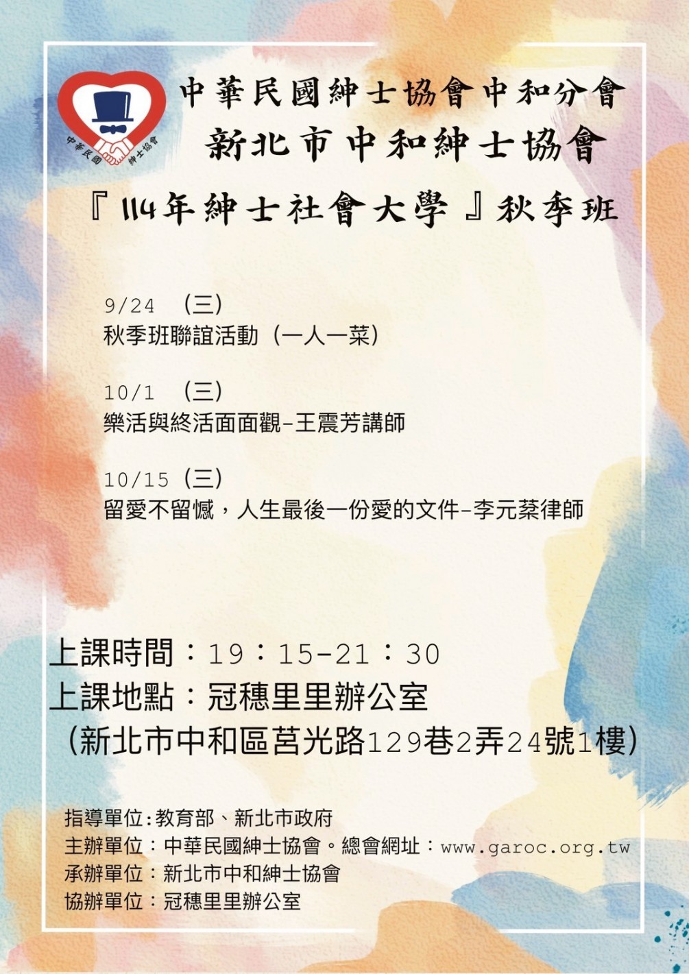 中和分會114年秋季班招生簡章