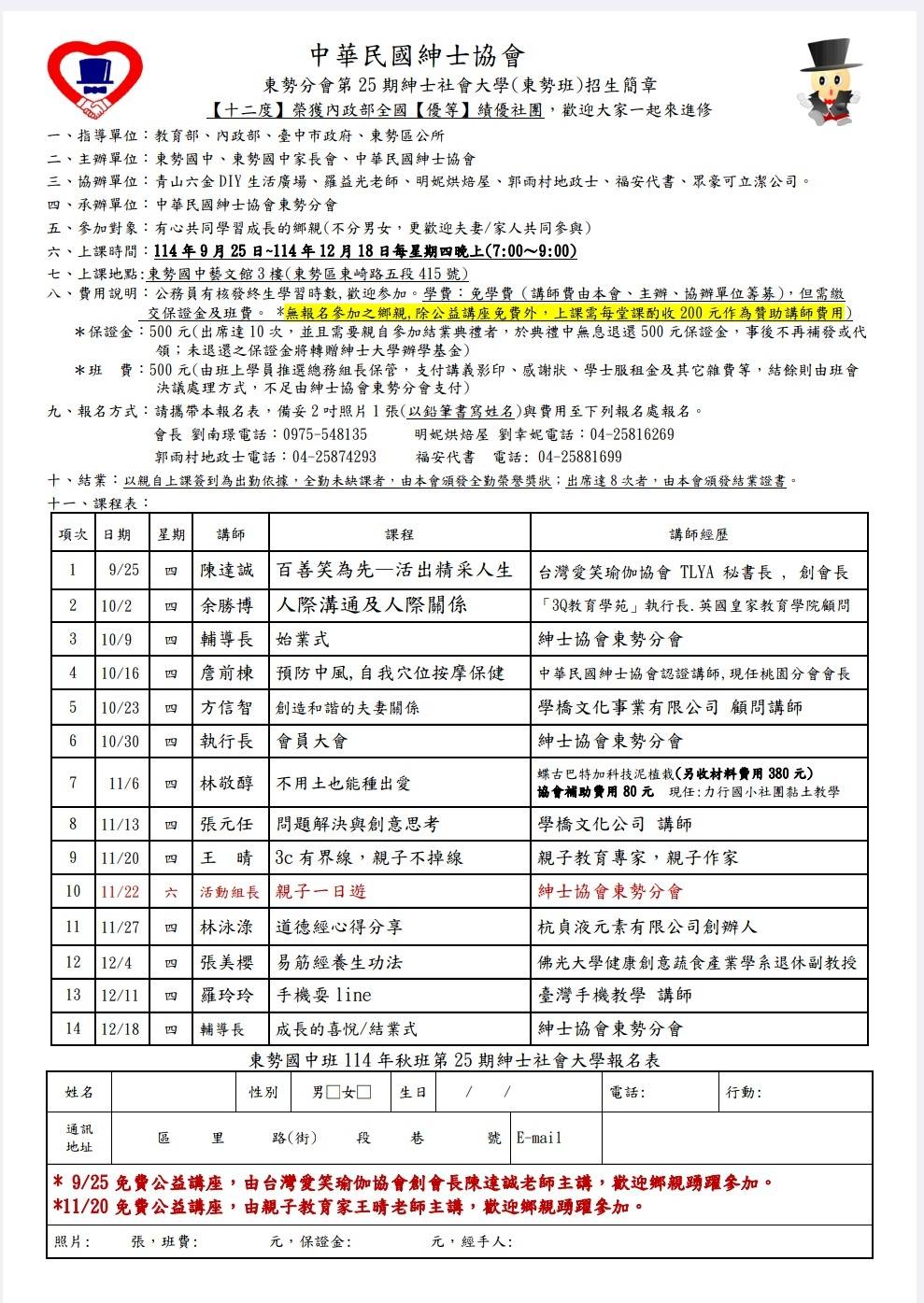 東勢分會114年秋季班招生簡章