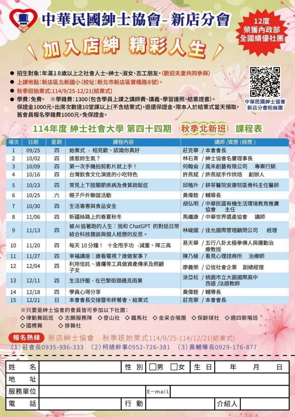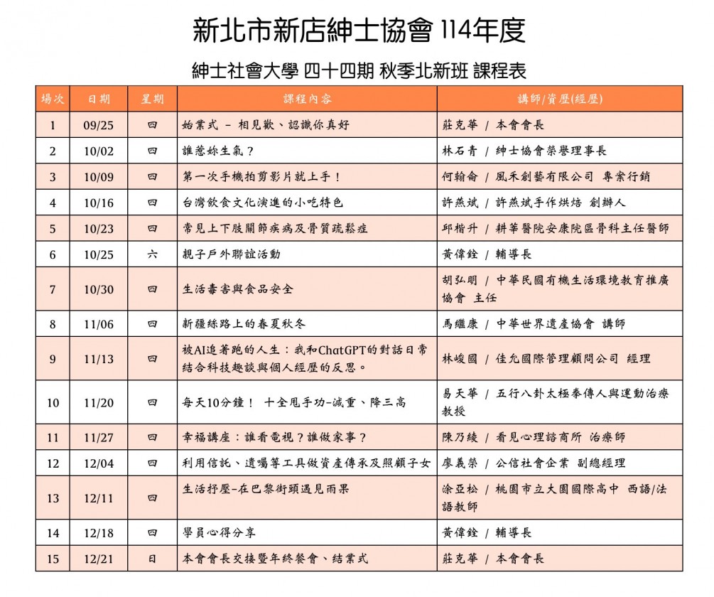 新店分會114年秋季班招生簡章