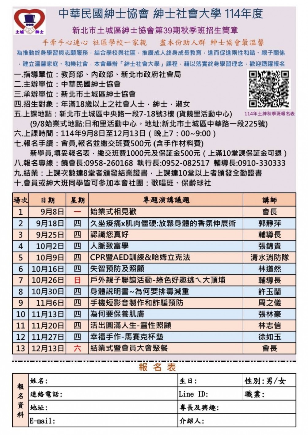 土城分會114年秋季班招生簡章