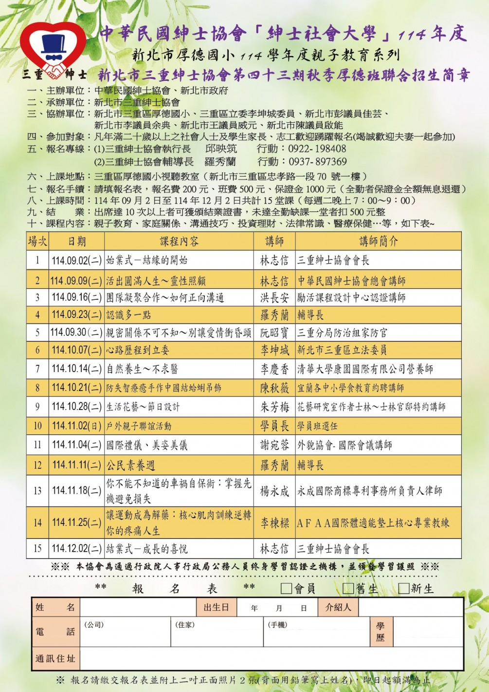 三重分會114年秋季班招生簡章