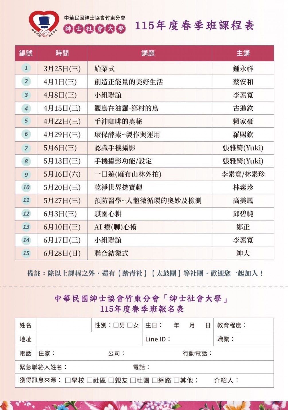 竹東分會115年春季班招生簡章